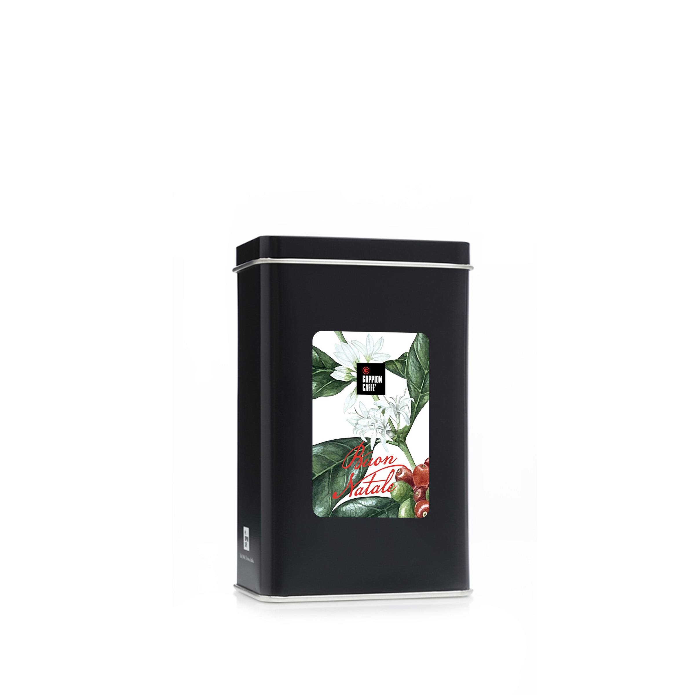 Idea Regalo: Lattina Nera per l’arrivo del Natale con 250g di Caffè Macinato 100% Arabica.